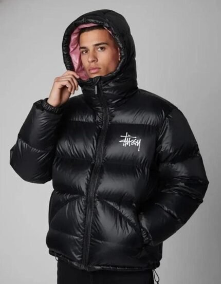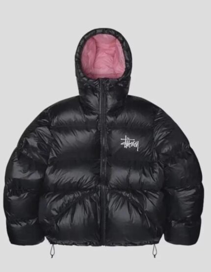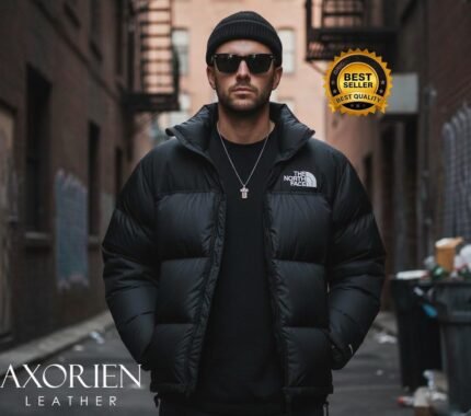 Norman Black Hooded Bomber Leather Puffer Jacket
