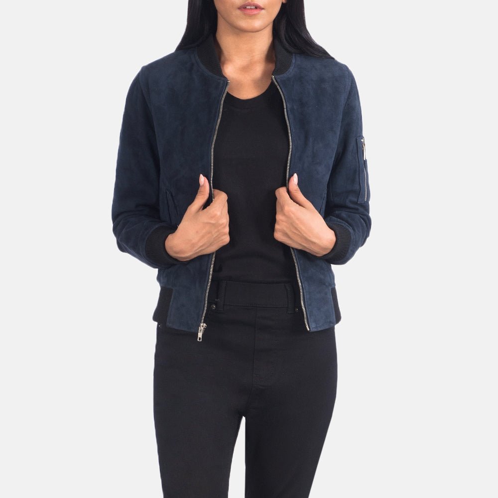 Ava Ma-1 Blue Suede Bomber Jacket