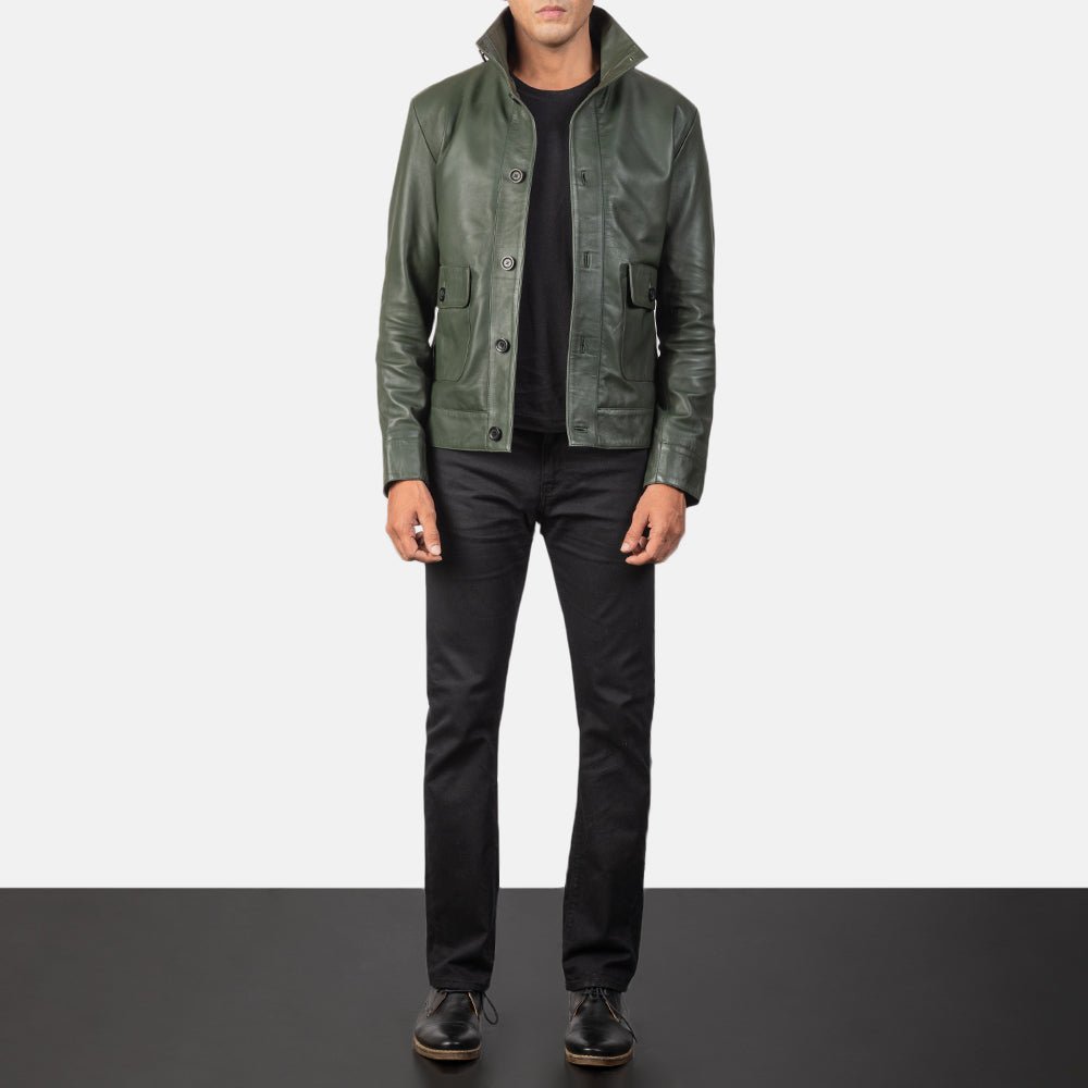 Columbus Green Leather Bomber Jacket