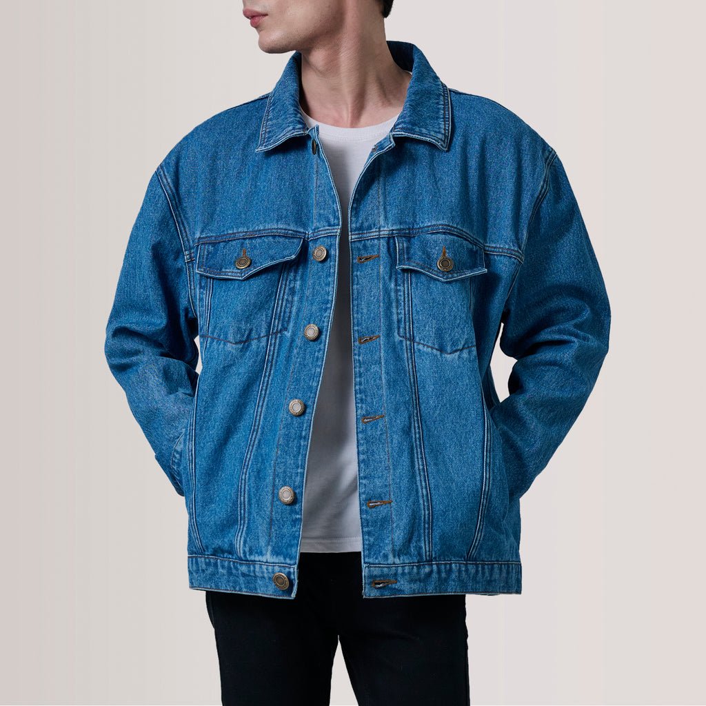5 reviews for Eddie Dark Blue Oversized Denim Trucker Jacket