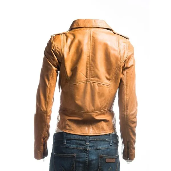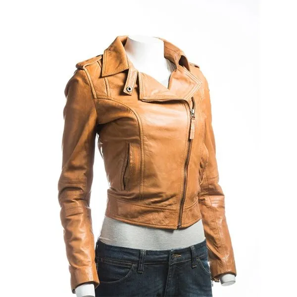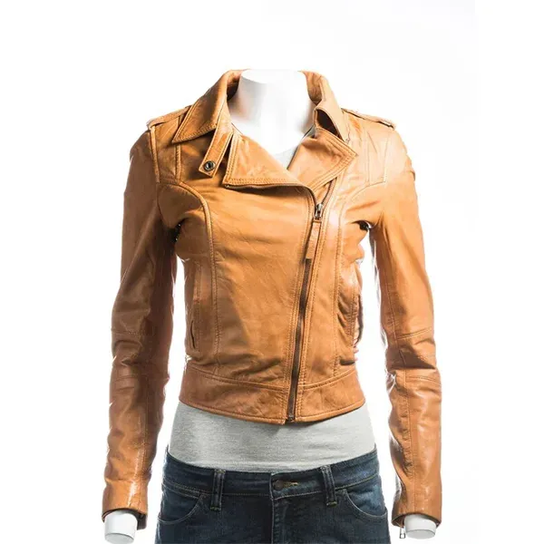 Ladies Tan Biker Leather Jacket