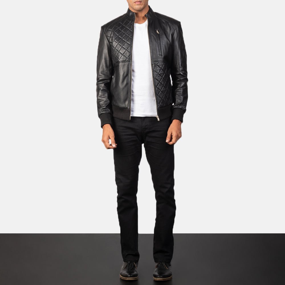 Norman Black Hooded Bomber Leather Puffer Jacket