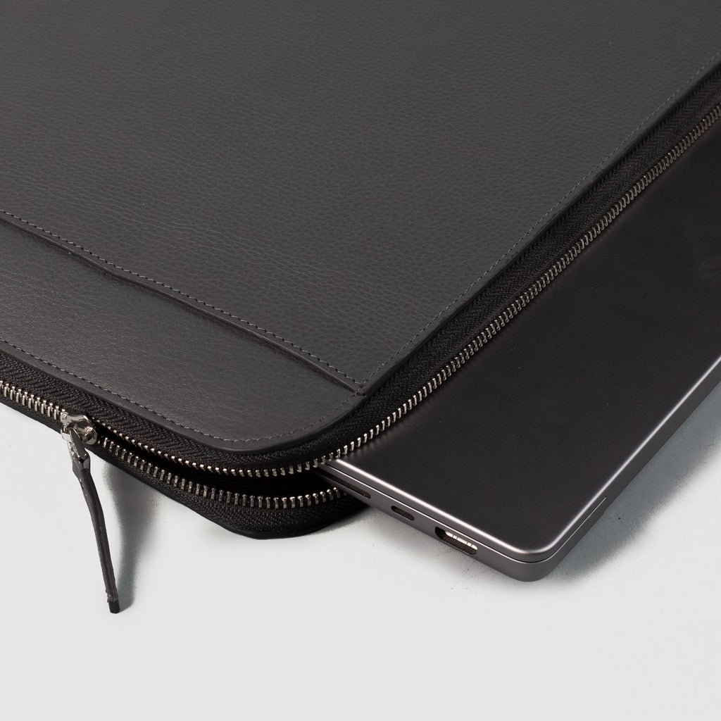 The Baxter Grey Leather Laptop Sleeve